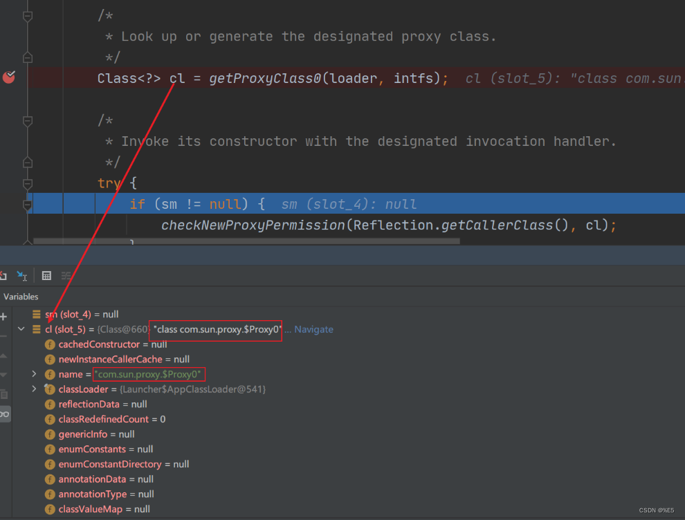 //复制一份接口的Class对象 final Class<?>[] intfs = interfaces.clone(); final SecurityManager sm = System.getSecurityManager(); if (sm != null) { checkProxyAccess(Reflection.getCallerClass(), loader, intfs); } //获取代理类(!!!这里代理类,不是代理对象) Class<?> cl = getProxyClass0(loader, intfs);